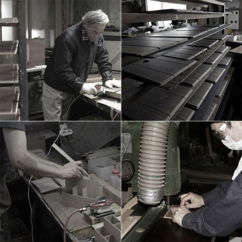 バスクシリーズの生産は、日本三大漆器産地のひとつ、紀州漆器の里、和歌山の工場で作られます。木製漆器に携わってきた橋本達之助工芸の職人達がひとつひとつ作り上げています。