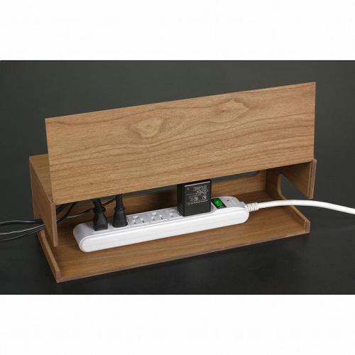 【散らかるケーブルたちを、木調ケースでスマートに収納】