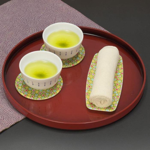 【華やかな装飾の友禅和紙を使った、食洗機対応のおしぼりトレー】