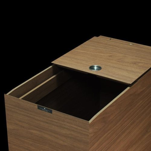 クオリティの高さを求めたこちらのダストボックスは、シックな木合板パネルを、より美しく精巧に継ぎ目を抑えて接合して仕上げた、紀州漆器木工職人の技あり品。洗練されたインテリア収納のようなデザインが魅力です。