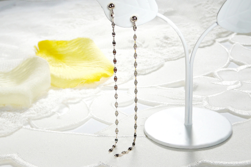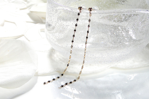 上品でモダンな印象のエクレアチェーン。華奢なラインが美しい、ロングスタッドピアス。
