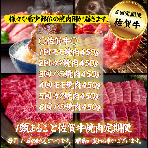 - 【定期便6回】【牧場直送】1頭まるごと佐賀牛焼肉定期便:B980-003