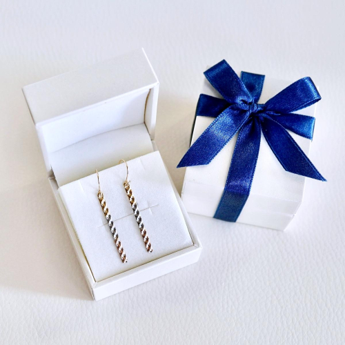 3カラーなので他のジュエリーアイテムとコーディネートもしやすく、シンプルなフォルムもスタイリッシュです。