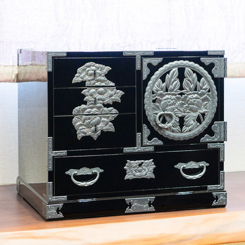 • 【仙台箪笥】片開小箪笥 黒呂漆塗り KM-3KD 欅産業 たんす 家具 収納 インテリア