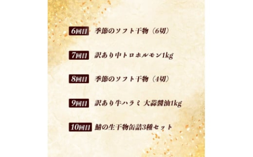- 【定期便・毎月お届け】海の京都 肉と干物の定期便 10回 【 魚 肉 新鮮 定期便 干物 ホルモン ハラミ もつ鍋 焼き肉 牛タン 鯖 すき焼き 赤身 人気 おすすめ 牛肉 食べ比べ 京都 舞鶴 】