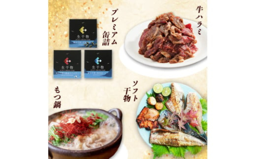 - 【定期便・毎月お届け】海の京都 肉と干物の定期便 4回 【 魚 肉 新鮮 定期便 干物 ホルモン ハラミ もつ鍋 焼き肉 牛タン 鯖 すき焼き 赤身 人気 おすすめ 牛肉 食べ比べ 京都 舞鶴 】