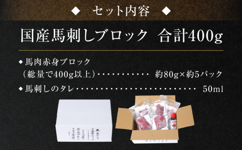 - ・馬肉赤身ブロック 約80g×約5パック(総量で400g以上)