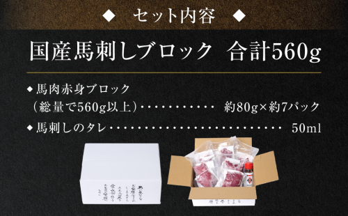 - ・馬肉赤身ブロック 約80g×約7パック(総量で560g以上)
