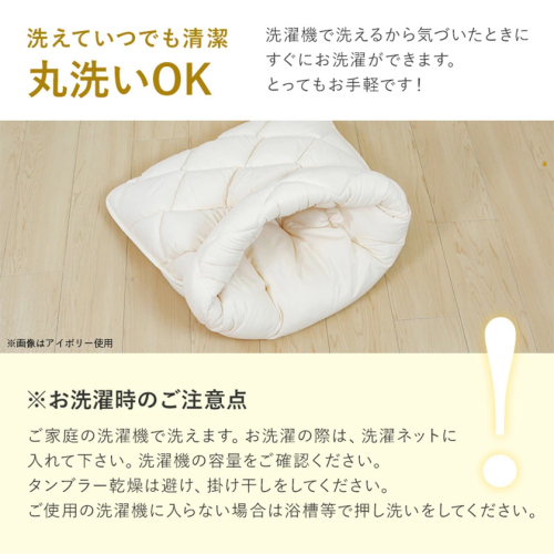 ・ご家庭の洗濯機で丸洗いできます。※ご家庭の洗濯機の容量をご確認ください。