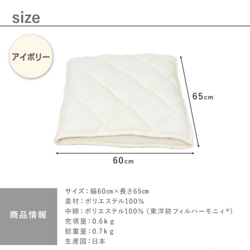中綿に、抗菌防臭・防ダニ効果のある高機能性綿の東洋紡フィルハーモニィを使用しているので清潔で快適にお使いいただけます。