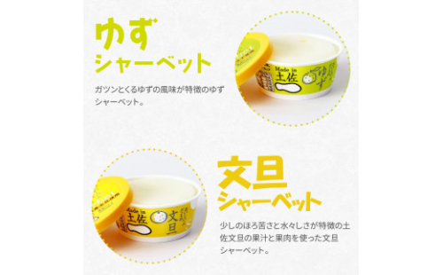 ガツンとくるゆずの風味が特徴のゆずシャーベット。少しのほろ苦さと水々しさが特徴の土佐文旦の果汁と果肉を使った文旦シャーベット。室戸市吉良川産のフルーティな香りと甘みをたっぷり含んだぽんかんシャーベット。高知のアイスといえば「アイスクリン。」素朴で懐かしい味の土佐の代表的なアイス。シャーベットと高知のアイスクリンを組み合わせたギフトセットです。