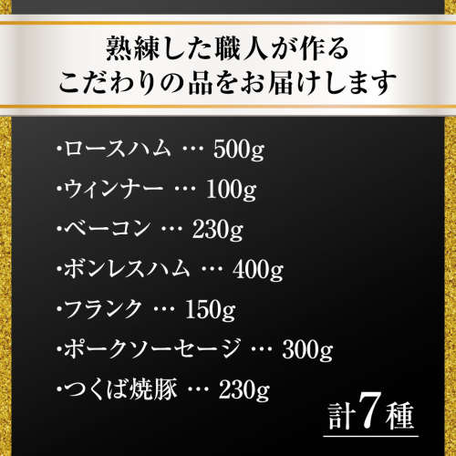- 【お歳暮熨斗付き】 筑波ハム バラエティ ブロック 7品 ( ハム ベーコン ソーセージ 焼豚 ) 『常陸の輝き』 茨城県産 ブランド豚 銘柄豚 ( 茨城県共通返礼品 ) ロースハム ボンレスハム フランク ウィンナー 豚 ポーク ステーキ 肉 お肉 [EN006sa]