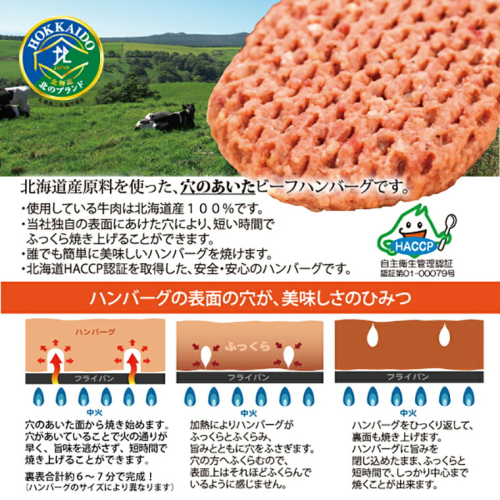 北海道ビーフハンバーグ(150g×4)お試し4枚セット 穴のあいたビーフハンバーグ