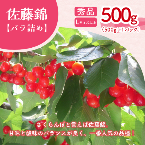 ・さくらんぼ「佐藤錦」秀L以上 500g(500g×1パック)バラパック詰