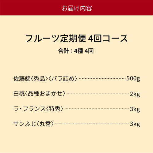 フルーツ王国山形で育った美味しさいっぱいの果物4種類を4回お届けします。
