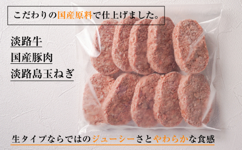 こだわりの精肉店仕込み、手ごね生ハンバーグ。淡路牛、国産豚、淡路島玉ねぎをバランスよく使用し、それぞれの旨味を丁寧に引き出しました。3D急速冷凍でおいしさと新鮮さを保ち、生タイプならではのジューシーさとやわらかな食感をお楽しみいただけます。ご家庭で気軽に精肉店の味わいをお試しください。 有限会社淡路ビーフ新谷(0799-62-6263) ・返礼品の配送にあたり、事業者などより連絡する場合がありますので、必ず日中連絡がつく電話番号、またはメールアドレスをご登録ください。 ・寄附への御礼の品です。ご不在や送付先住所の誤り等により、返礼品がお届けできない場合、再送は致しかねます。あらかじめご了承下さい。