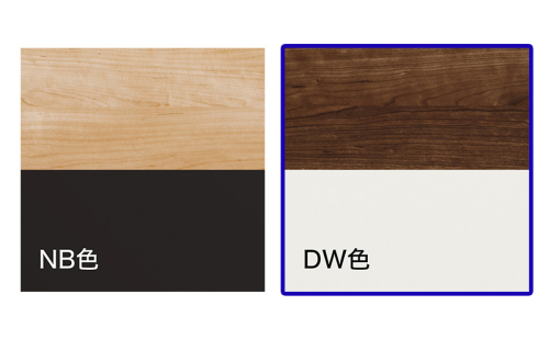 温かみのある木目柄の天板とホワイトやブラックのシャープな印象の脚元は、