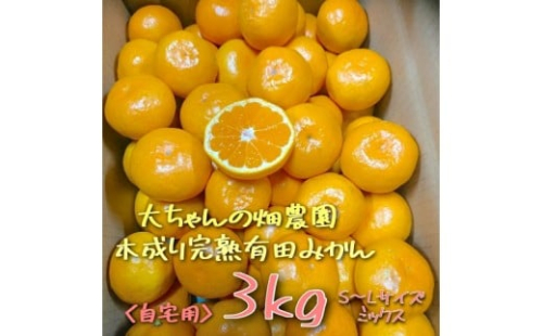 【ご家庭用】有田みかん 3kg (S~2Lサイズミックス)木成り完熟 大ちゃんの畑農園