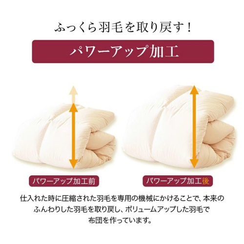 さらに、羽毛は吸放湿性に優れた素材で、お布団内の湿度を調節する機能もあるため快適な睡眠環境を作ります。