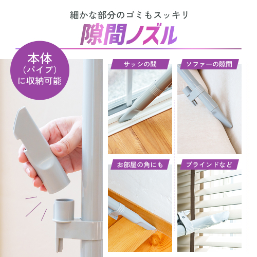●付属品:フロアノズル1個、連結パイプ2本、ホース1本、すき間用吸込み口1個、紙パック1枚(本体に装着)