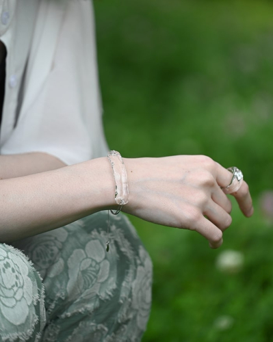 波打つようなディテールが光のラインをつくり、手元を華やかに彩ります。