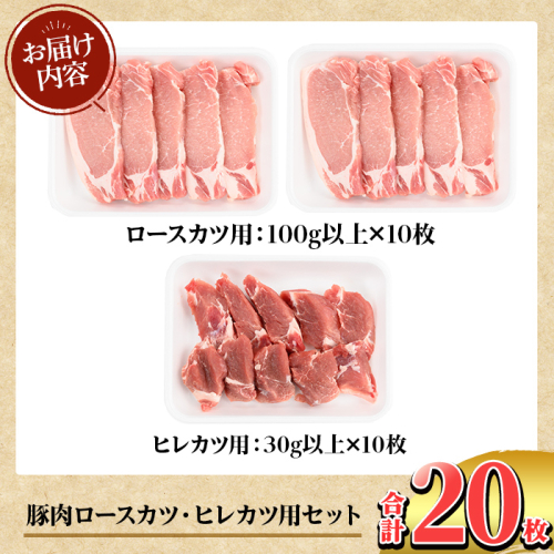 K-310 鹿児島県産 豚肉ロースカツ・ヒレカツ用(合計20枚セット)【TRINITY】霧島市 国産 冷凍 小分け 豚肉 ぶた ブタ 肉 ロース ヒレカツ セット