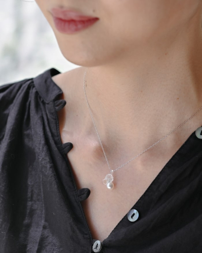 輝きの異なるガラスとパール。 煌めきと透明感、艶やかさの3つの表情が重なり合い、印象的なフォルムを形作ります。 ※スライドボール付き 〇Freshwater Pearlシリーズ HARIOのガラスと淡水パールを組み合わせた、新しいシリーズです。 高い養殖技術により生み出される、上質な淡水パールをあしらっています。 ※ハンドメイドのため、形状に個体差が出る場合がございます。 ※アクセサリーの金具は、体質によってかゆみ・かぶれが生じる場合があります(金属アレルギー等)。皮膚に異常を感じた時はご使用をお止めいただき、皮膚科専門医にご相談ください。 ※離島への配送不可(北海道・沖縄本島は可) ※着日指定不可 【サイズ】 ガラス大きさ:12×7(mm) チェーン長さ:450(mm) 【素材】 チャーム:耐熱ガラス、淡水パール チェーン:真鍮+ロジウムカラーメッキ(シルバーカラー) 【製造/加工の内容】 ガラスの生産