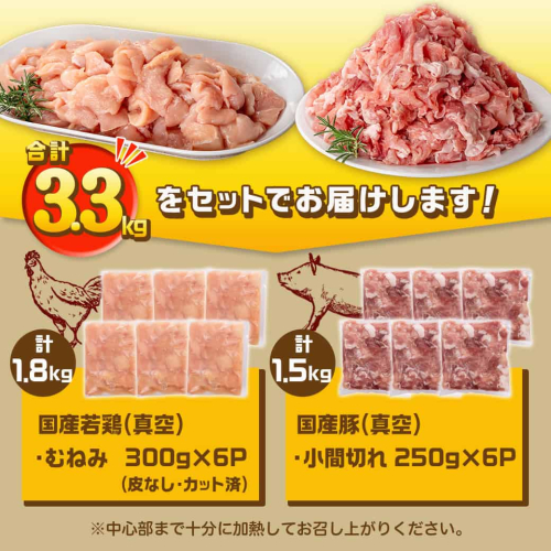 国産若鶏むね肉≪皮なし・カット済≫&国産豚小間切れ【総重量3.3kg】_MJ-L901