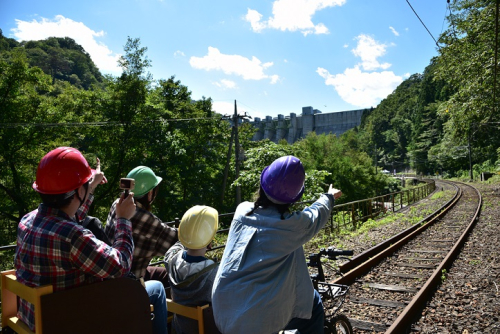 八ッ場ダムへは、駐車場からシャトルバスに乗車し、新緑の国指定名勝「吾妻峡」を眺めながら向かいます。