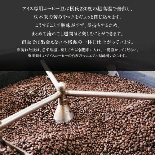 アイス専用コーヒー豆は摂氏230度の超高温で焙煎し、豆本来の苦みやコクをギュッと閉じ込めます。