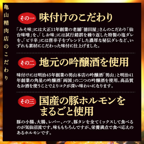 亀山印 気仙沼ホルモン しお味 500g ×2 [気仙沼市物産振興協会 宮城県 気仙沼市 20565252] 豚 生モツ ホルモン 塩 しお 味付き 焼肉 冷凍