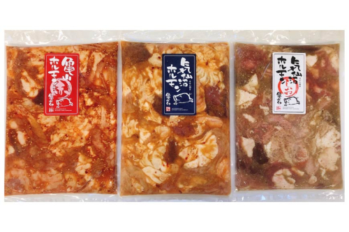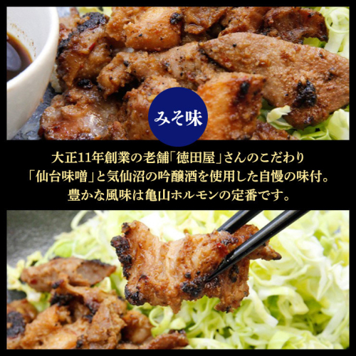 【TVで紹介!】亀山印 気仙沼ホルモン 食べ比べ みそ・しお・ピリ辛 各500g ×2p 計6p [気仙沼市物産振興協会 宮城県 気仙沼市 20565248] 豚 生モツ ホルモン みそ 味噌 しお 塩 ピリ辛 味付き 焼肉 冷凍