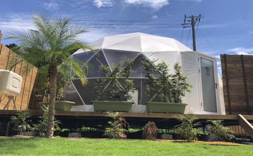 客室はお好みに合わせて、ドームテントまたはキャンピングトレーラ—、コンテナルームがございます。