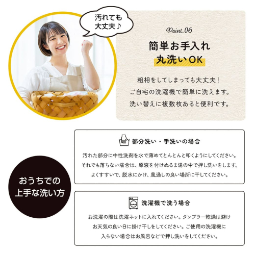 ・ご家庭の洗濯機で丸洗いできます。※ご家庭の洗濯機の容量をご確認ください。