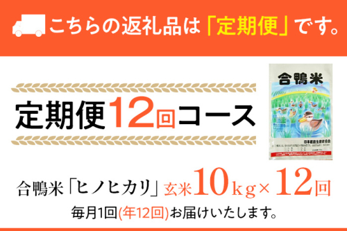 令和7年産 合鴨米「ヒノヒカリ」(玄米・10kg)定期便12回コース BI07 ※2025年10月より順次出荷予定