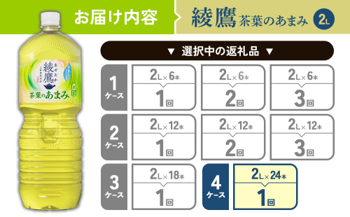 綾鷹 茶葉のあまみ 2L PET【コカ・コーラ】ペットボトル 4ケース(24本) セット お茶 緑茶 日本茶 茶葉 あまみ 送料無料