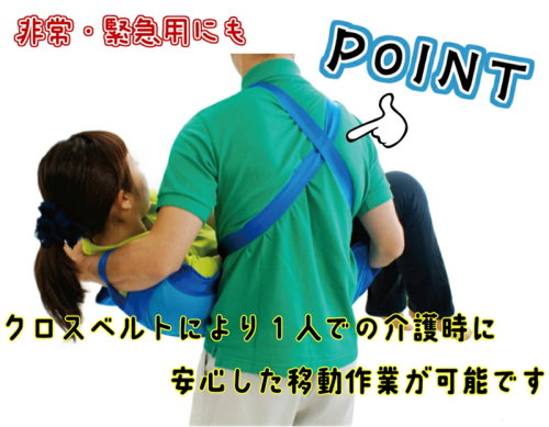 ・クロスベルトにより腕だけでなく広い面で支えることができるので、安心して移動作業が行えます。