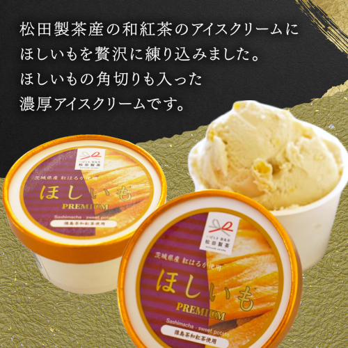 松田製茶産の和紅茶のアイスクリームにほしいもを贅沢に練り込みました。