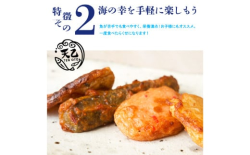 有田市の老舗「天乙商店」が厳選した素材で作る、食べやすい一口サイズのおつまみ天です。