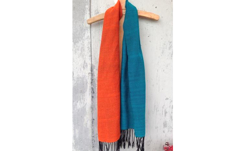 ito to iro 手染め・手織り仕上「ストール」 ターコイズグリーン×オレンジ・バイカラー(ツイル織り) ファッション小物