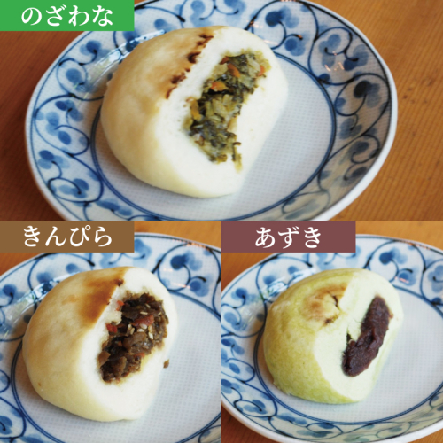 種類:のざわな・きんぴら・かぼちゃ・あずき・りんご・チーズ・きのこ(各1個)
