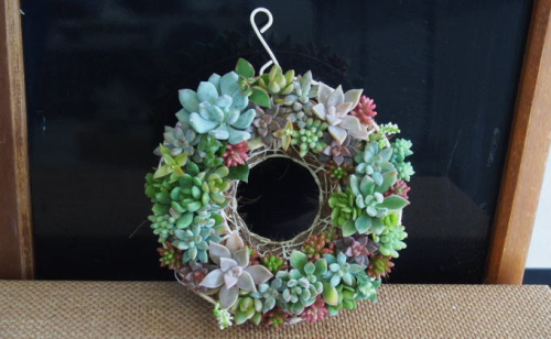 多肉植物は直射日光と乾燥に強いので、玄関の扉に飾っても良いです。