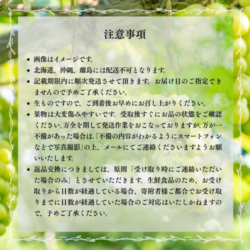 ※デリケートな果実ですので、輸送中の揺れなどにより房落ちなどが起こる場合があります。