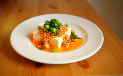 厳選した国産鶏むね肉に、こだわり抜いた自家製ガーリックオイルに漬け込み旨味を凝縮、さらにフライドオニオン、炒りゴマがさらなる旨味、香ばしさと食感を最大限に引き立たせています。