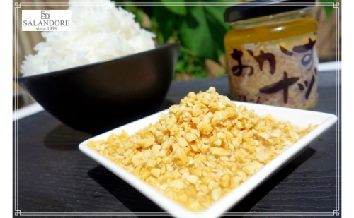 細かく砕いたナッツと、独自のスパイスを特製ガーリックオイルに漬けて、ザクザク食感に凝縮した旨味がやみつきになる、何度でも食べたくなる美味しい逸品に仕上げました。