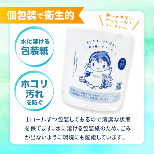 利府町オリジナルの古紙100%のリサイクルトイレットペーパーです。 観光イメージキャラクターのリーフちゃんのパッケージで、明るく親しみやすいデザインのオリジナル返礼品です。 町内で収集を行った古紙を原料の一部として利用しており、エコロジー資源を活用した、地域に還元できるSDGsの取り組みにもなっております。 ■利府町オリジナル トイレットペーパーの特徴 ・再生紙100% ・個包装で衛生的 ・水に溶ける包装紙 ・無香料 ・長めの65mタイプ、芯有り ・ミシン目あり 日常生活の中でご家庭での掃除、お手洗いなど様々なシーンでご活用いただけ、ストックしておくと便利でいざという時にも安心です。 ■ 宮城県 利府町 ■ トイレットペーパー 再生紙 シングル 国産 日用品 リサイクル 生活用品 エコ 備蓄 SDGs 定期便