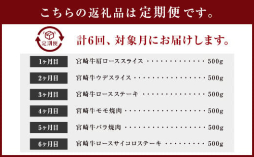 - <ミヤチク 宮崎牛6ヶ月定期便>お申込みの翌月下旬頃に第一回目発送(12月は中旬頃) 合計約3kg 和牛 定期 宮崎牛 新生活応援 卒業祝い 就職祝い 入学 卒業 お花見 引越し