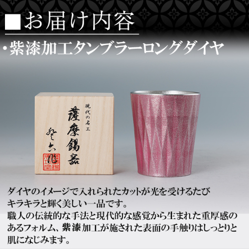- K-498 薩摩錫器 タンブラーロングダイヤ(紫漆加工)《メディア掲載多数》【薩摩錫器工芸館】霧島市 鹿児島 伝統工芸品 錫製品 錫製 タンブラー 錫 食器 日用品 ギフト 贈答 贈り物 プレゼント
