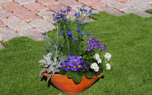◆春・・・アスター、ラベンダー、ブルーデージー、ブラキカム、スカビオアサなど  夏・・・アンゲロニア、イソトマ、アメリカンブルー、ペリュニア、ネモフィラ、トレニアなど  秋・冬・・・ビオラ、パンジー、アネモネ、ラベンダー、ジュリアンなど
