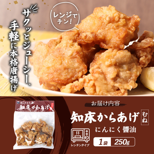 レンジで簡単 知床からあげ にんにく醤油 むね肉 250g | オンライン申請 ふるさと納税 北海道 中標津 唐揚げ にんにく 醤油 レンチン 揚げたて 冷凍食品 時短 調理 鶏 ザンギ おかず 惣菜 弁当 専門店 店の味 お取り寄せ ワンストップ マイページ 肉のさとう 中標津町